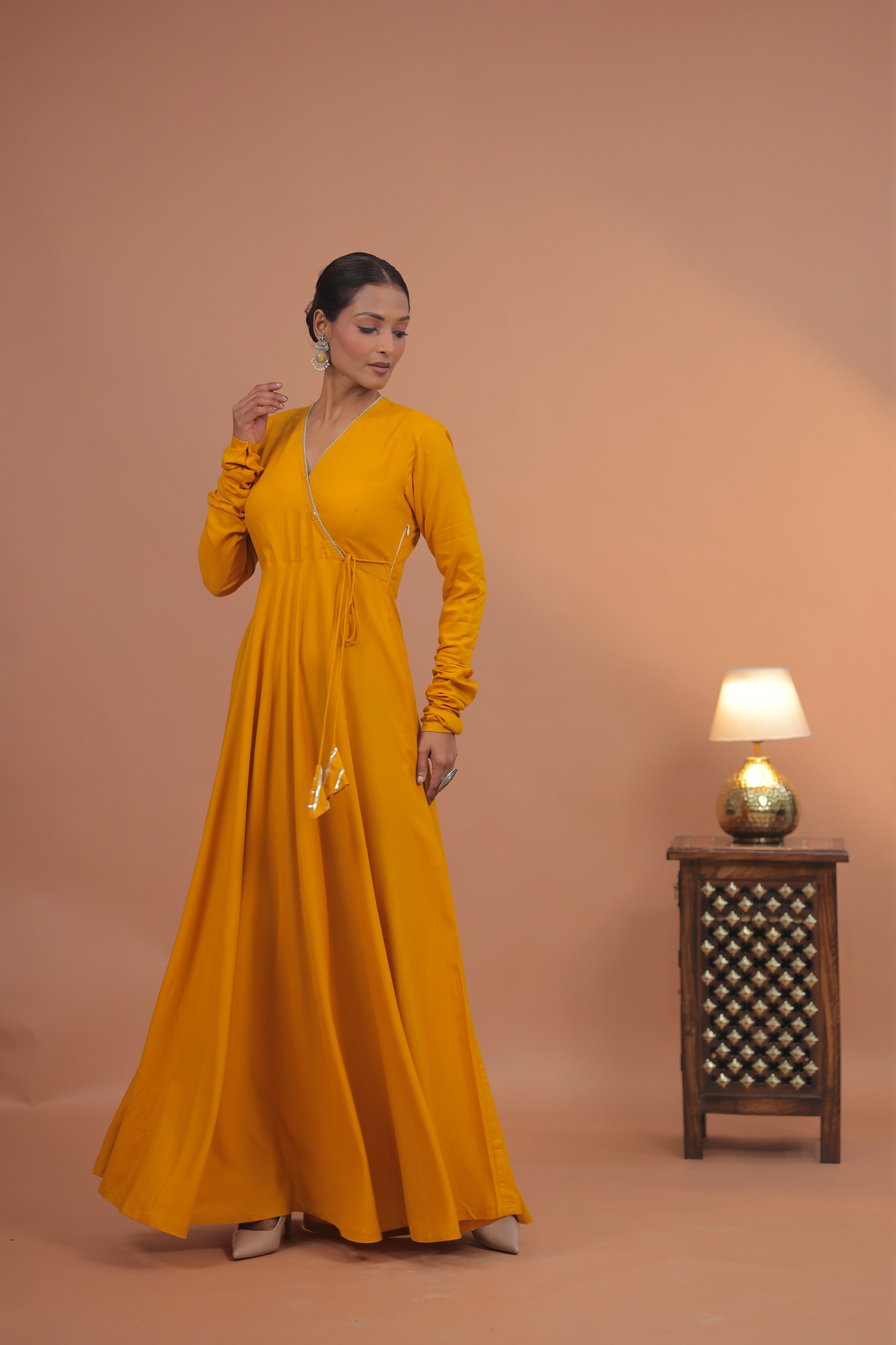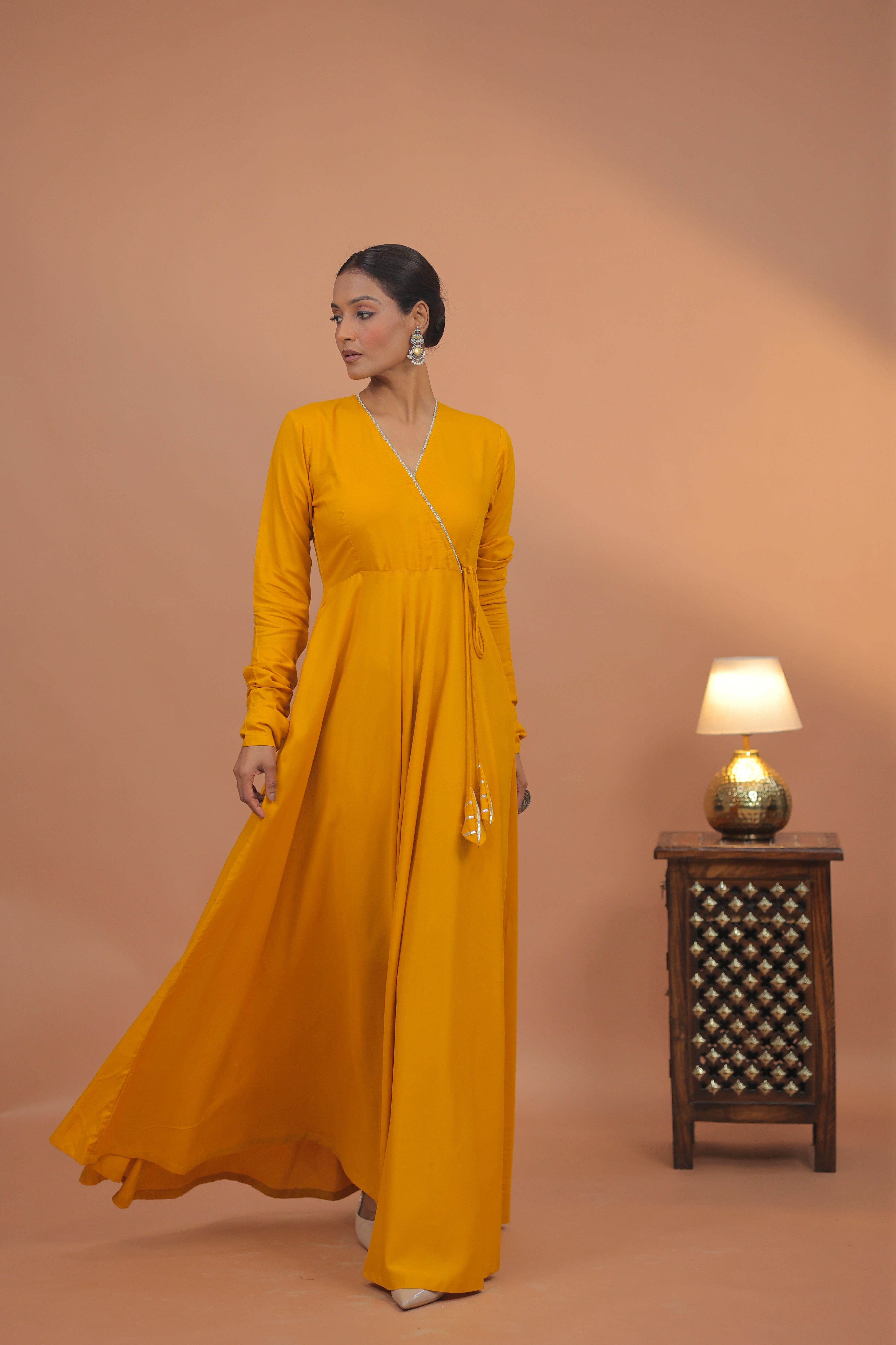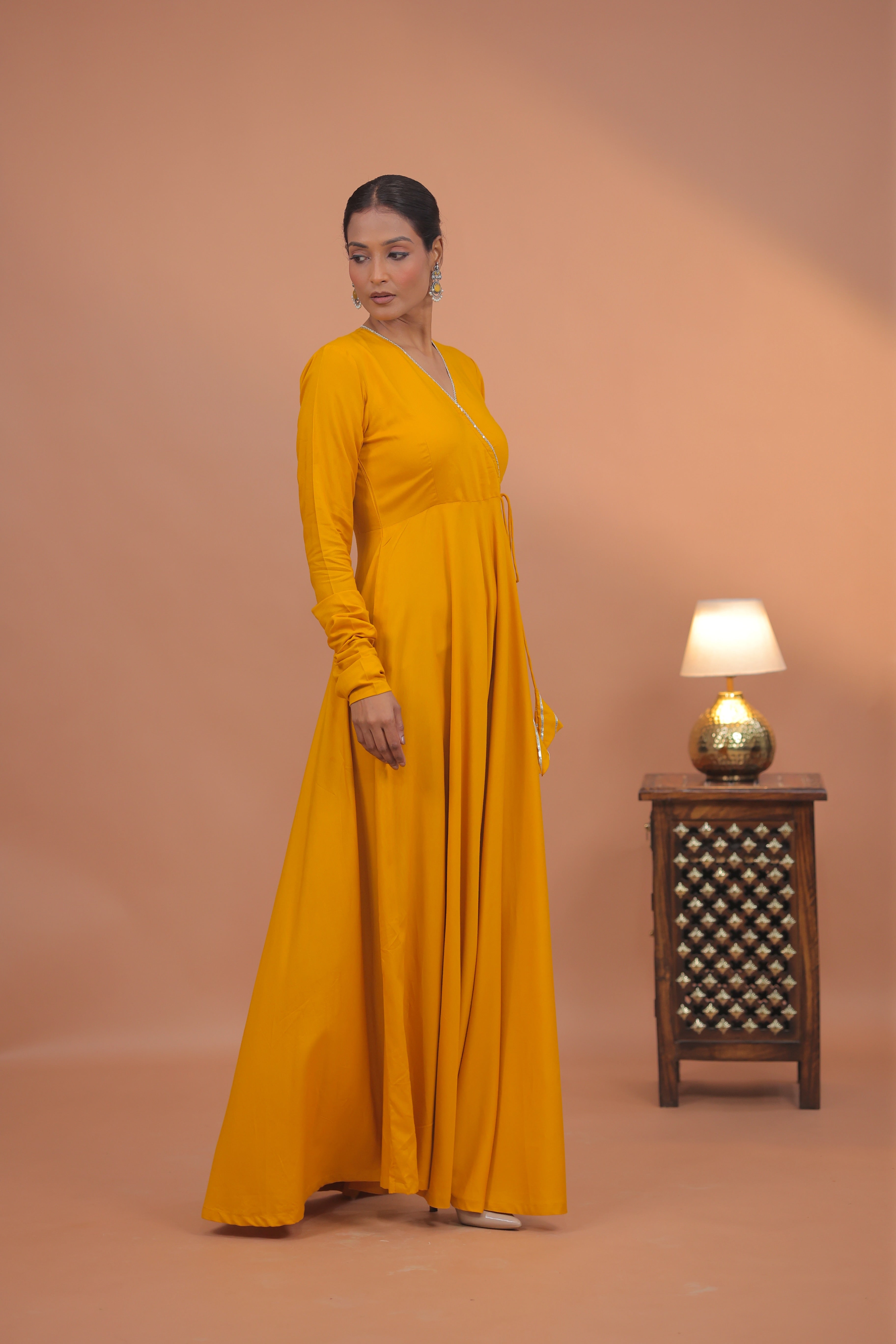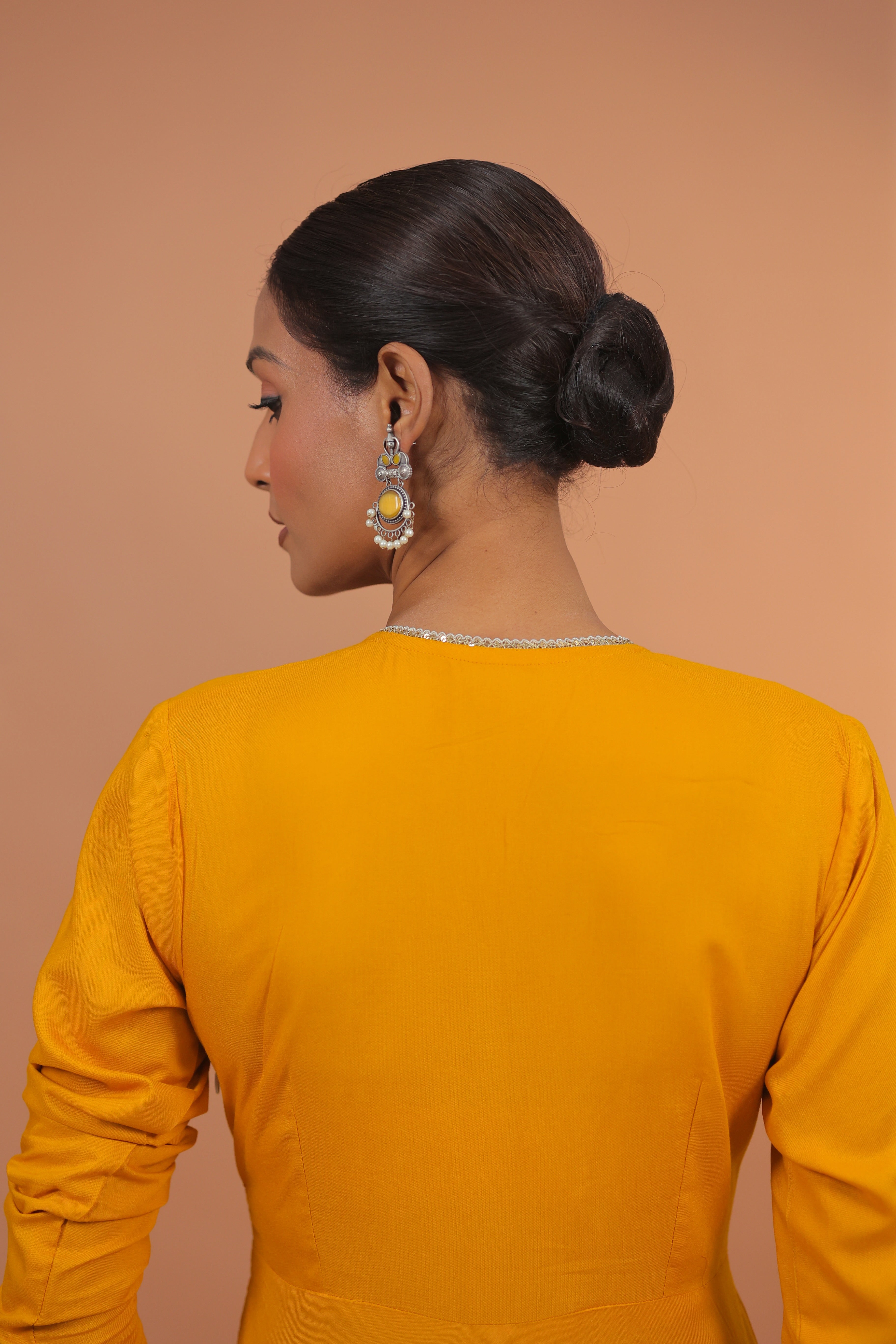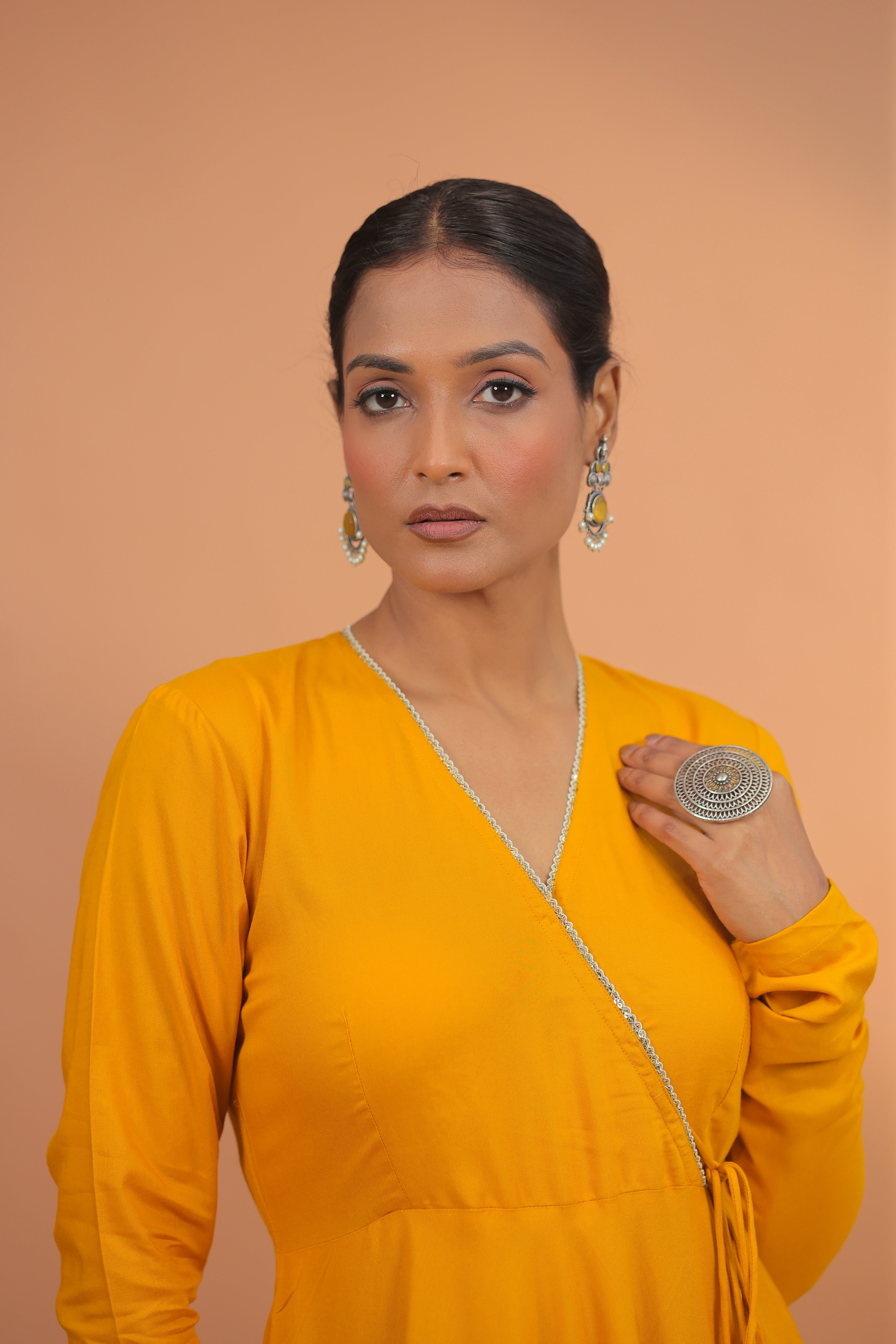 Radiant mustard tones in a clean, contemporary silhouette.